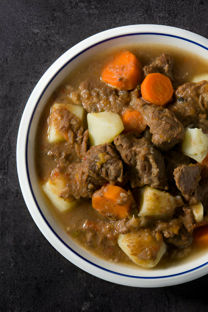 To complete the meal, consider serving with a glass of dry red wine such as Cabernet Sauvignon or a light, malty lagerโboth complement the stewโs savory profile without overwhelming the palate.